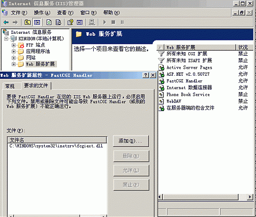 同時在 IIS 的 “Web 服務(wù)擴展”里多了 FastCGI Handler