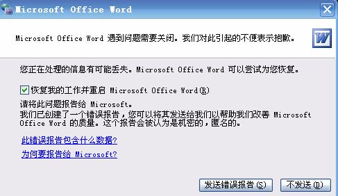 打開word文檔時,遇到過錯誤報告信息對話框為“恢復(fù)我的工作并重啟microsoft office word”的選項信息嗎?